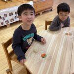 途中から自分でパズルを持ってきた子どもは、「ここがいい!」、「一緒にやりたい。」と、友だちと一緒のテーブルに座って遊び始めました。子どもたちなりにお友だちとの関わりや一緒に過ごす雰囲気を楽しんでいました。