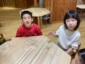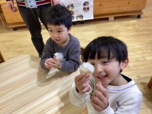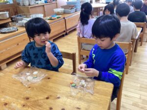 味が苦手という子もいましたが、皆で頑張って作ったからと一口食べる姿も見られました。