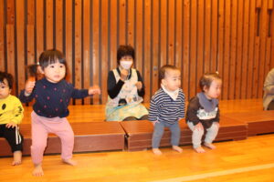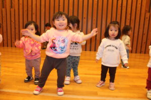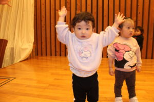 1歳児クラスは元気いっぱい体を動かして楽しんでいました。