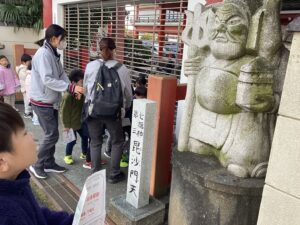 神様を見つけると、自分たちで名前や意味を確認し、スタンプカードにスタンプをポン。「つぎはここかな?」と楽しみながら七福神を見つけていました。