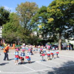 今日は待ちに待った富士森公園散歩。子どもたちは前の日から「明日、いっぱい歩くんだよね」と、そわそわ。公園までは年長組の子どもたちが、年少組のお友と手を繋いで歩きました。道路を渡るたびに「こっち(車道側)を歩くんだよ」と互いに教え合っている姿も。いつもより長い道のりを歩き、公園に到着です。あまり行き慣れない公園に子どもたちは興味津々。沢山体を動かして遊びました。沢山遊んで帰る子どもたちの楽しみはお弁当給食。「おなかすいた」と口々に話す姿も。お弁当を食べると「おいしい」と満足気な子ども達でした。