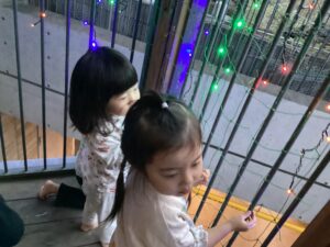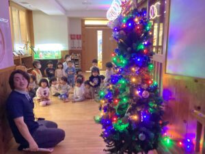 点灯したイルミネーションをじ~と見つめる小さな子ども達や、すっかりクリスマス気分な子どもたち。最近、お部屋ではクリスマスの塗り絵を塗ったりサンタさんに何を頼んだか話している姿が見られます。「プレゼントをもらえるようにサンタさんにかっこいい姿を見せる」と張り切る様子もあります。