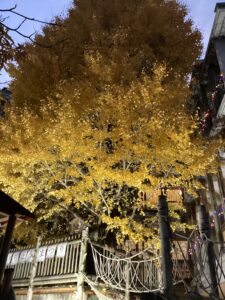 園庭のイチョウの木もライトアップされていてきれいです。