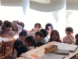 訓練後子ども達へわかりやすく話をすると、真剣に保育者の話を聞く姿がありました。