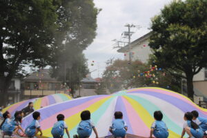 練習中はお友達を応援したり、年上のお友だちが真剣に取り込む鼓笛やパラバルーンを