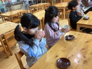 丁寧に入れられた煎茶を飲んだ子どもたちは「お味はいかかでしたか?」と友だちに聞かれると